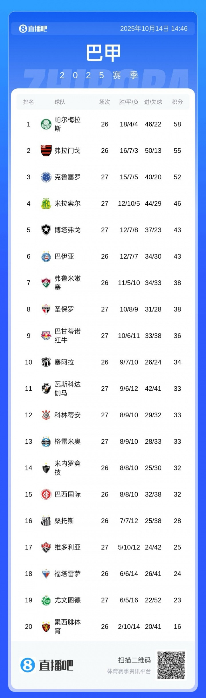 内马尔与桑托斯的合同将于2025年12月31日到期。保级成败不仅关乎桑托斯的形象与声誉,也关系到内马尔的续约问题,这位历史偶像亦是俱乐部当前最重要的资产。迈阿密国际正密切关注。